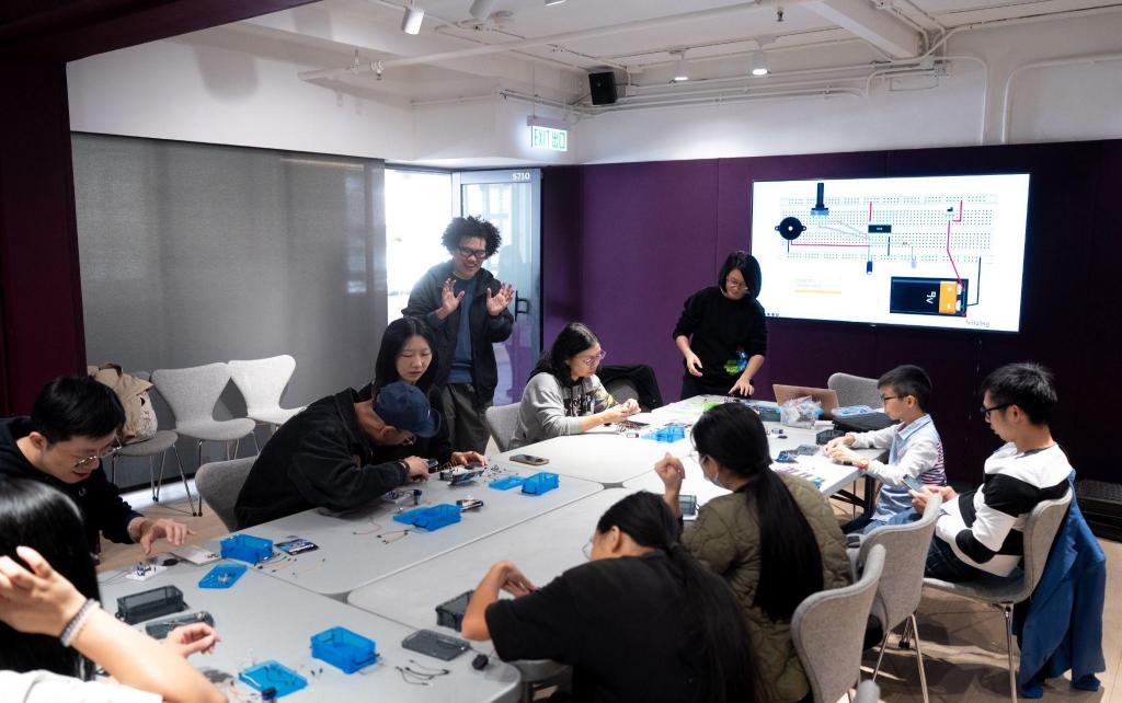 科技类:“化身:流动的幻我”AI设计工作坊用3D雕塑与生成式AI创作个人化充气装置、“Design your BloomDentity”将MBTI数据转化为3D打印花瓶、“DIY 光影乐器”、“电子声光饰物”在面包板上搭建电路,实现光影转声音、声音控灯光。 传统工艺类:“扎合啦竹扎灯罩”学习削竹、扎竹、裱纸,制作吊灯 / 台灯罩;“混色星际手工纸”用回收色纸打浆,通过抄纸技术创作星际图案;“手捏陶瓷音乐铃”用三种陶泥制作可发声的陶瓷铃;“岛屿研究:盐填纸”用香港岛屿海水盐晶作画。