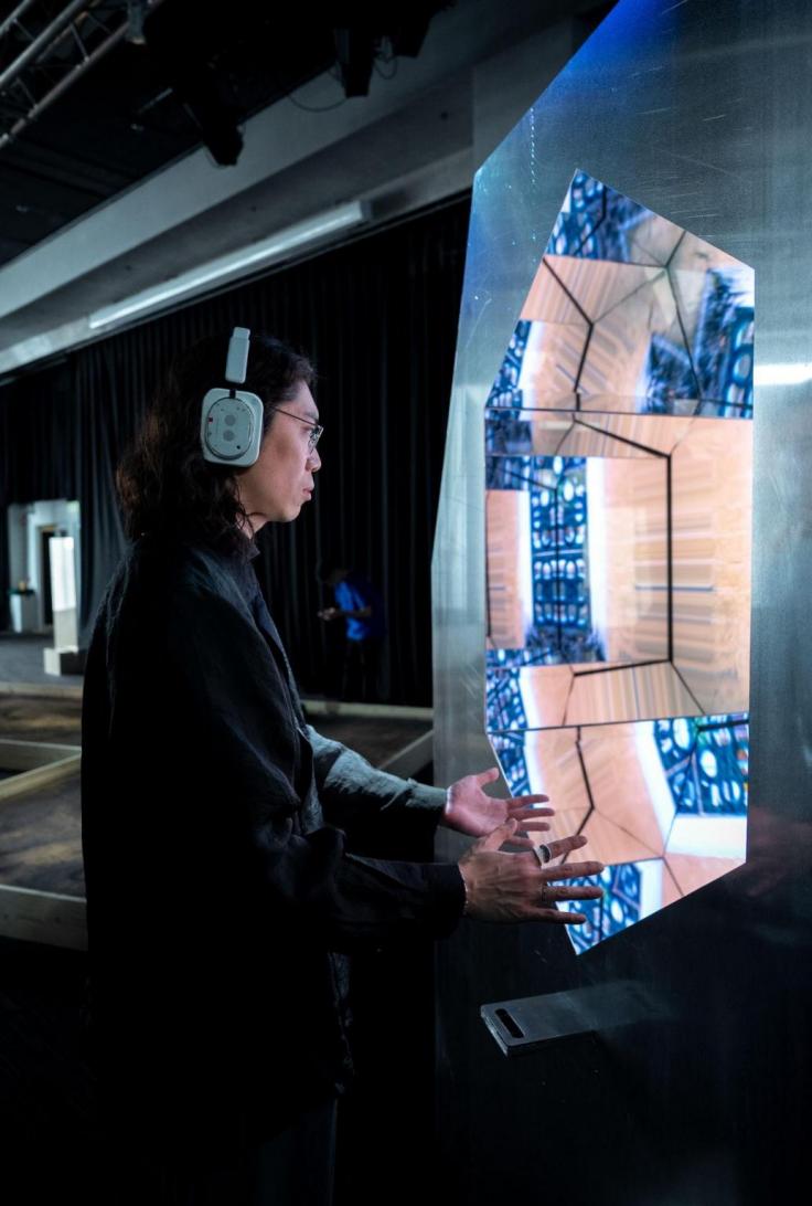 实时视觉艺术家孔凡亮设计的《都市脉动:光谱之窗》以香港街头多样的窗户为原型,通过动态感应技术捕捉观众动作,转化为生成式投影(如光影流动、城市街景碎片)与声音。观众的举手投足会“重塑”窗户呈现的内容,成为“城市脉动的共同创造者”,反思个体与社群的连接。