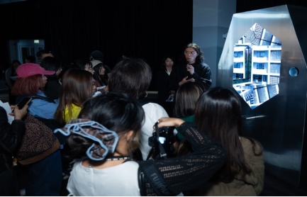 瑞士Encor Studio带来的《ALCOVE IN SITU》,是本届“deTour 设计节”最具代表性的沉浸式装置。该工作室由建筑、设计、声音创作、编程领域专家组成,擅长将科技与低保真(Lo-fi)物料结合,并自制工具,追求美感至上。作品将电控调光薄膜装置于PMQ 二楼“智方”玻璃幕墙,通过玻璃“通透——雾化”的瞬时转换,模拟记忆的“消散与重现”,呼应普鲁斯特《追忆似水年华》中 “感官唤醒记忆”的内核。展览空间无实体展品,仅以光线、声音与空间的交织重塑感知,观众的身影与动作会成为“动态画布”的一部分,在互动中体会“在场与缺席”的微妙张力,诠释“无形之物更具情感分量”的创作理念。