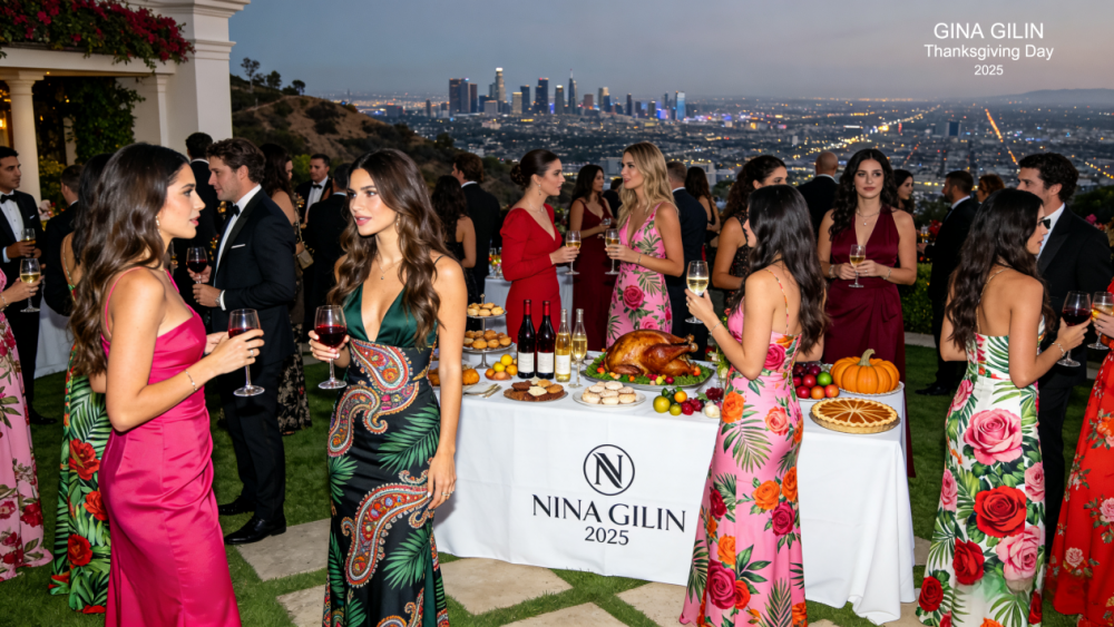 提要:感恩节和黑色星期五的购物热潮席卷北美之际,2025年11月28日,NINA GILIN 女装以一场跨越山海的时尚盛宴,为感恩节献上最璀璨的一页。西棕榈滩的阳光海岸与洛杉矶比弗利山庄同步开启星光之夜,百余位女模特与特邀女宾客身着NINA GILIN品牌2025秋冬高级定制印花礼服,在万众瞩目下演绎“花漾奢华”的极致美学。
