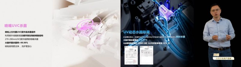 “T60净菌卫士专为女性生理期定制净菌方案:前置超精过滤—UV水路杀菌—阻垢喷枪—喷枪UVC紫外线杀菌。智能净菌科技环环相扣,让特殊敏感时期无负担,堪称私护级女性友好智能伴侣。” ——法恩莎产品首席官郑旭