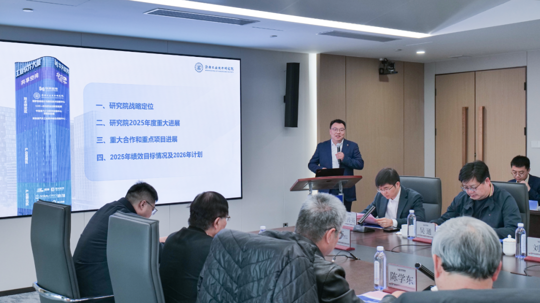 济南工业软件研究院执行院长李建勋博士汇报“研究院2025年度工作报告与2026年度工作计划”。