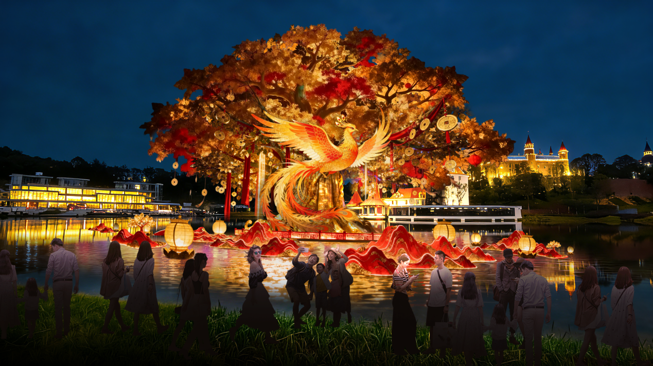 我们以“城市年俗沉浸体验+高标准制作”为目标,联合“G20峰会”、“大唐不夜城”、“印象西湖”等项目团队编制,以成熟系统保障整体演出品质。灯会期间规划9大演艺类型,覆盖湖景灯光演绎、主舞台节目、巡游互动、非遗展演、水幕秀与NPC沉浸演艺等,预计每日上演50余场,形成开园期间全时段、多点位的热闹年节氛围。