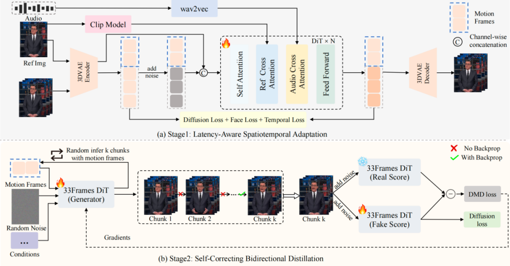 在这样的背景下,SoulX-FlashTalk正式开源,为了平衡生成质量与推理速度,团队采用了两阶段训练策略: