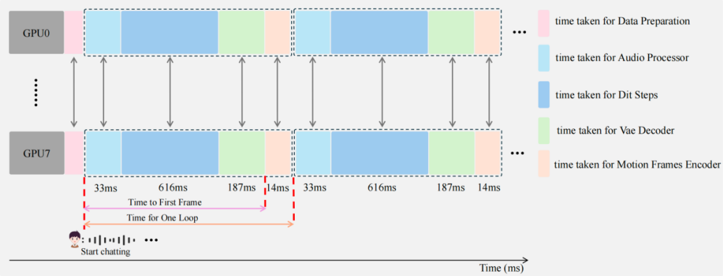 同时,团队进行实时推理加速系统优化, 针对 8-H800 节点设计的全栈加速引擎实现了亚秒级延迟,包括了
