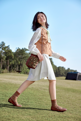 色彩上,深咖色,高级又百搭。它既能与阔腿牛仔裤碰撞出复古休闲感,也能搭配裙装,演绎甜酷清新的少女风格。这正是木林森所理解的春日气场:不盲目追逐潮流,而是以舒适自然的品质为基底,用细节诉说态度,让你在万物复苏的季节里,走出属于自己的自信步伐。