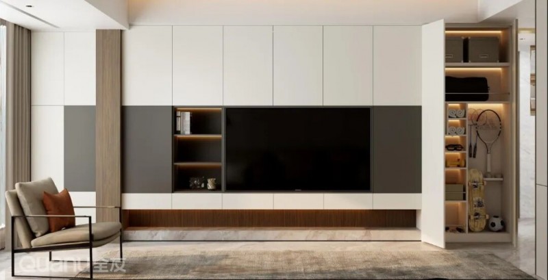 想拥有一个整洁高效的健身器材库,其实不必大动干戈——在客厅定制一个电视柜就能轻松实现。