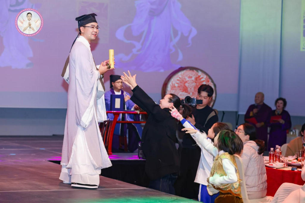妙心老师沿着璀璨灯光,在弟子们的鲜花与感恩中登场,每一年,妙心老师都会给御妙心的会员们带来明年的天人合一养生密码,让养生不走弯路,让御妙心成为每个家庭的护航船。作为深耕养生与传统文化数十年的孙膑道天道文化底七十九代传人,妙心老师从不同生肖丙午年事业财运的发力点,到家庭风水的关键布局,到健康养生的专属方案,倾囊相授。她的讲解深入浅出,干货满满,句句入心,让现场观众对天人合一的养生智慧有了更深刻的理解,也对来年健康养生有了清晰的方向。