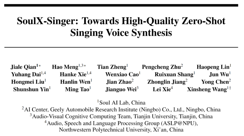 - 工业级稳定可用、零样本歌声合成,Soul App 联合吉利汽车研究院人工智能中心(AIC)、天津大学及西北工业大学开源SoulX-Singer