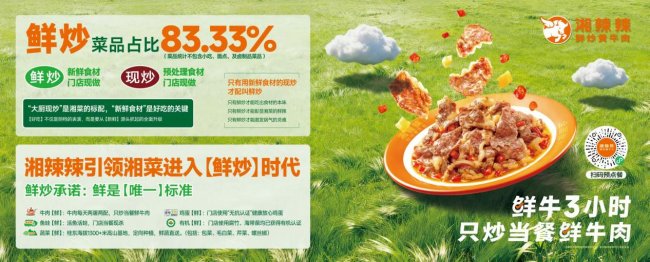 从品牌创立之初的“鲜炒黄牛肉”单点突破,到如今83%的菜品实现鲜炒,湘辣辣用五年时间,逐步构建起一个以“鲜”为核心的菜品矩阵。