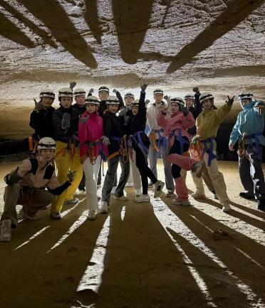 北京1部踏上了贵州黔南这片神秘的土地,首站打卡荔波酷玩森林公园。这里以洞庭为景,以山河为幕,仿佛隐藏着亿万年的时光密码,等待着勇敢者去解锁。穿越地下河谷栈道,邂逅洞林山水,钟乳石、卷曲石在光影中流转,80米天坑瀑布与地下奇观轮番惊艳,一边是探秘地心的极致冒险,另一边是山野自然的惬意放肆,团队成员们尽情享受,彻底放松身心。