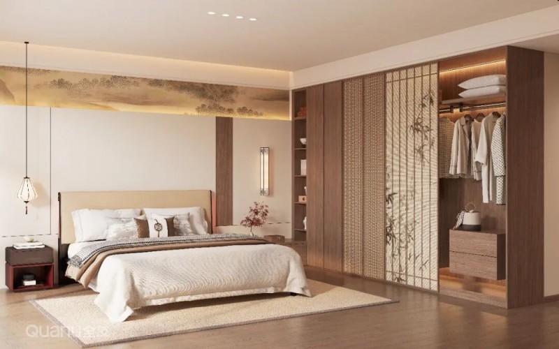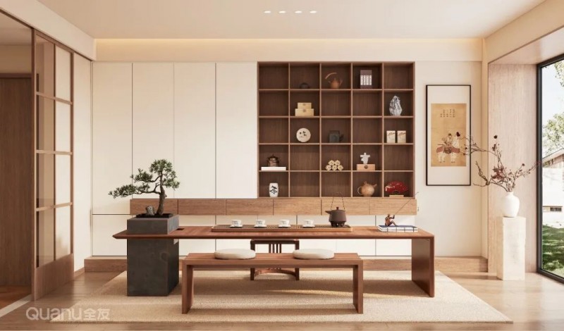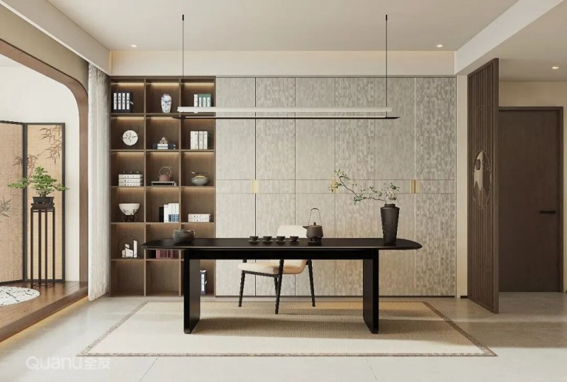 软装搭配上,多选用陶瓷、竹制品、茶具、水墨画这些中式元素,增添东方韵味。