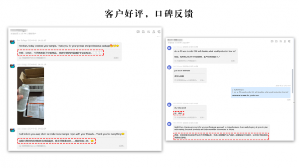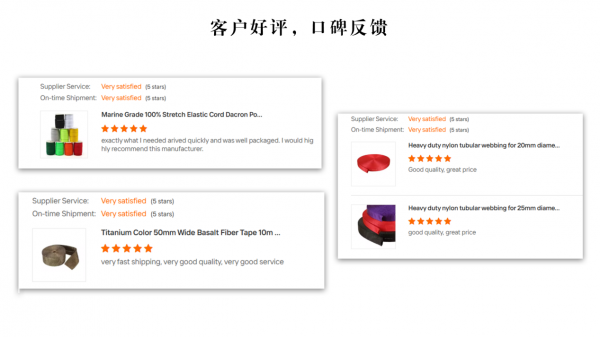 在特种绳带代工与定制领域,恩德勒斯凭借全产业链优势和资深技术团队,能够快速响应客户的个性化需求,高效完成定制打样与生产交付,成为众多客户的首选合作伙伴,这一点也在客户的好评中得到了充分体现。