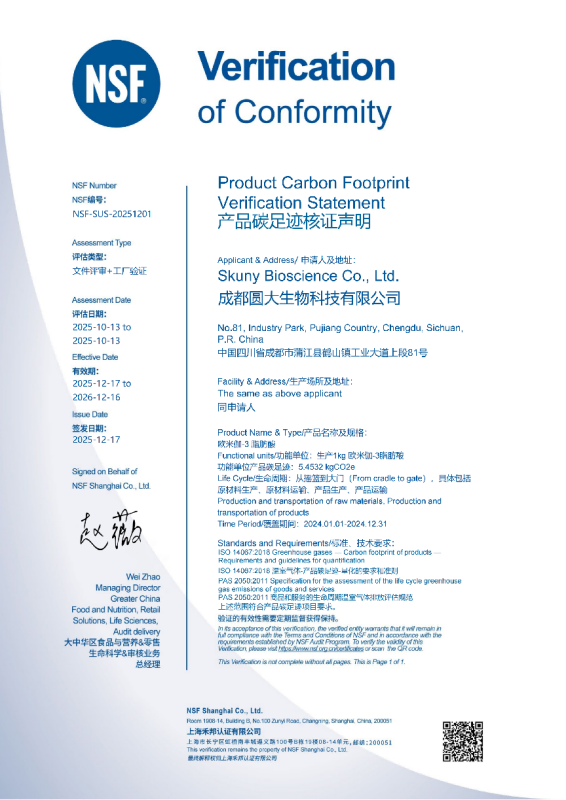 在健康消费升级与可持续发展理念并行的今天,藻源乐健®藻油以匠心品质收获多方面的产品认证,为市场树立了安全、纯净、可持续的新标杆。面对藻油氧化、污染与环保隐忧,藻源乐健®通过IAOS、IGEN、FOS、碳足迹等多重权威认证,证明自身对于产品稳定性与纯净度的保障,更践行了绿色低碳的生产承诺。藻源乐健®,以高品质、高稳定、高性价比的藻油原料,助力健康产品创新,也为全球消费者带来安全、放心、环保的Omega-3营养解决方案——共同开启精准健康与可持续发展的新篇章。