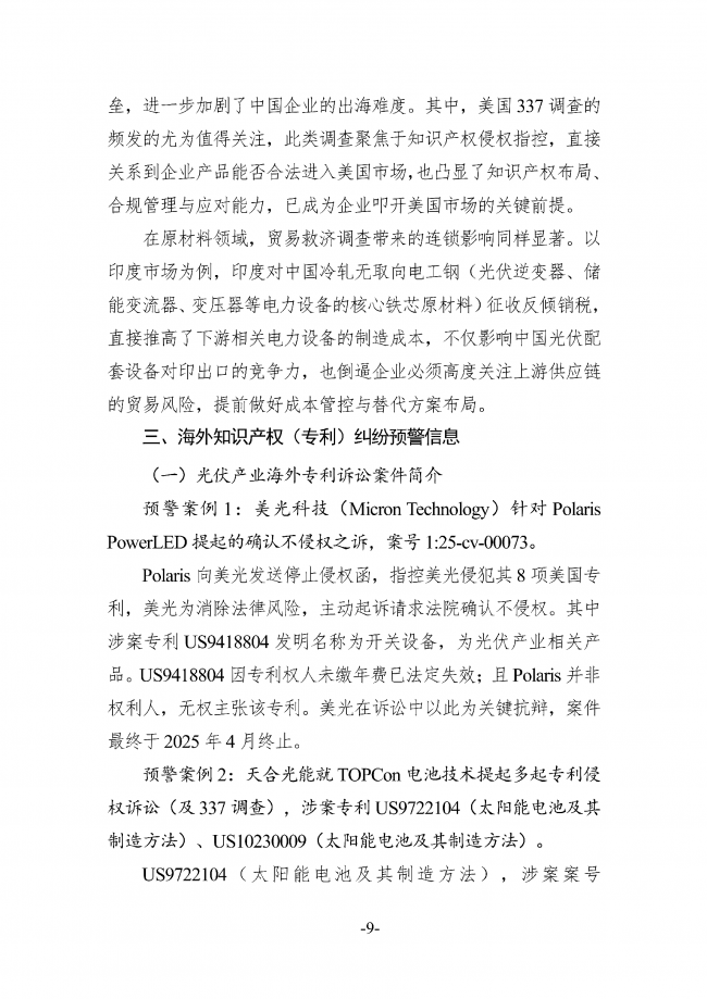 - 光伏产业出海知识产权风险预警信息简报:全链条风险凸显需强化合规与专利布局