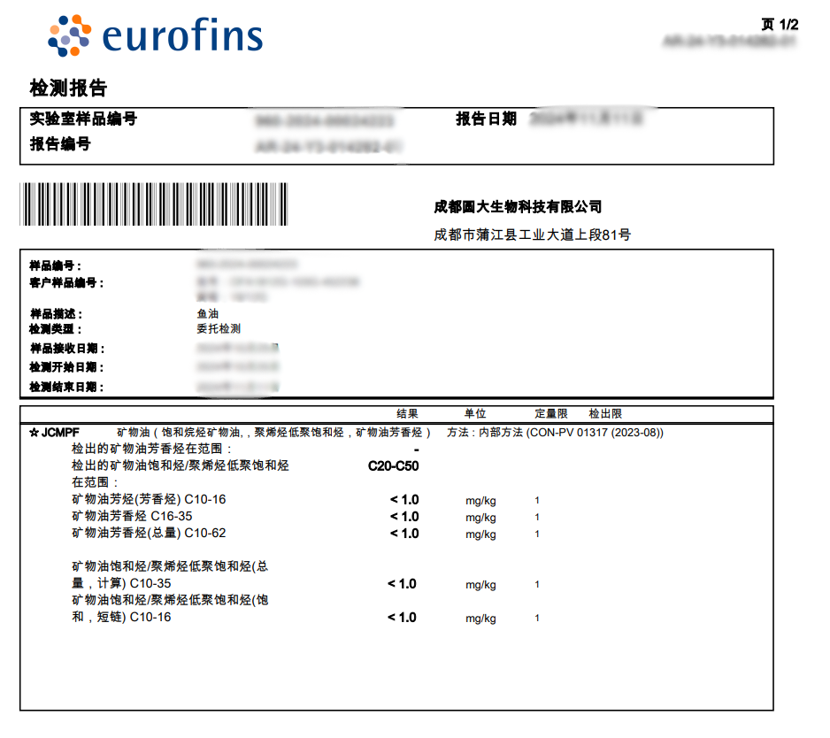 图5:98nTG鱼油欧陆矿物油检测报告