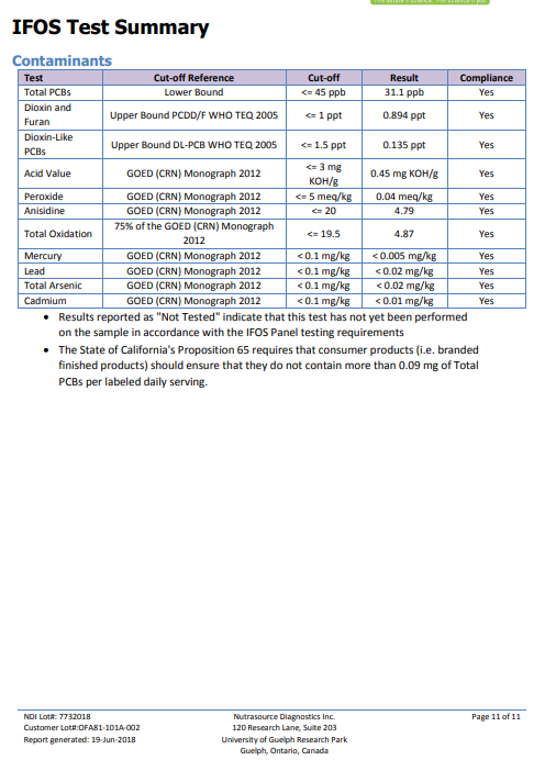 图4:98nTG鱼油IFOS检测报告(截取)