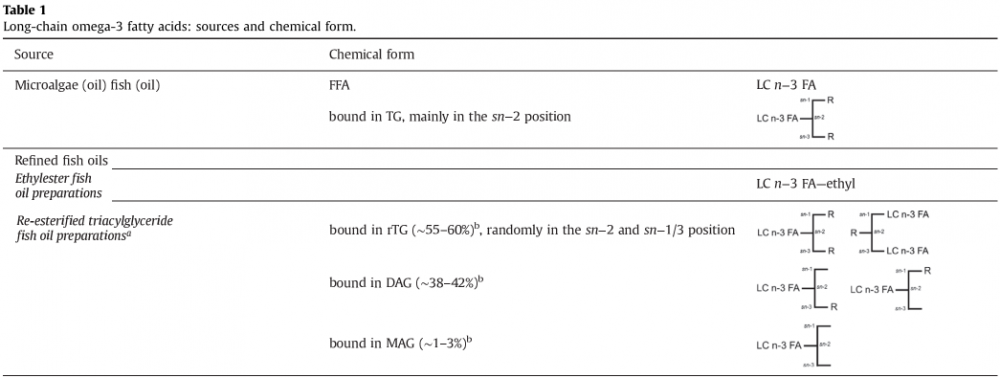 图:Omega-3脂肪酸的来源及结构形式