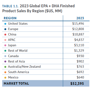 图2:2023年全球EPA+DHA成品销售额(按地区划分)