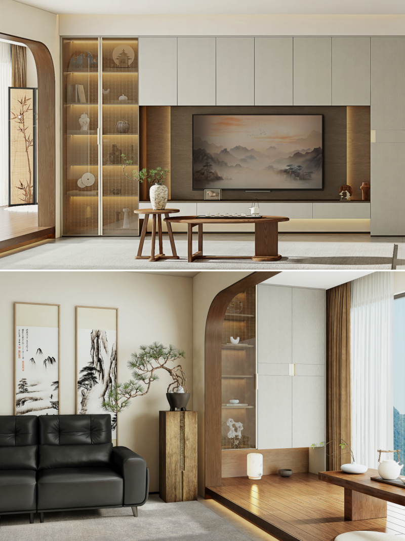 承袭东方底蕴,气质温润端庄。软装多选用木质细腿家具,轻盈雅致。整体色彩沉稳柔和,营造静谧氛围。软装与硬装处处藏着东方巧思,端庄大气,自带岁月静好的气质。