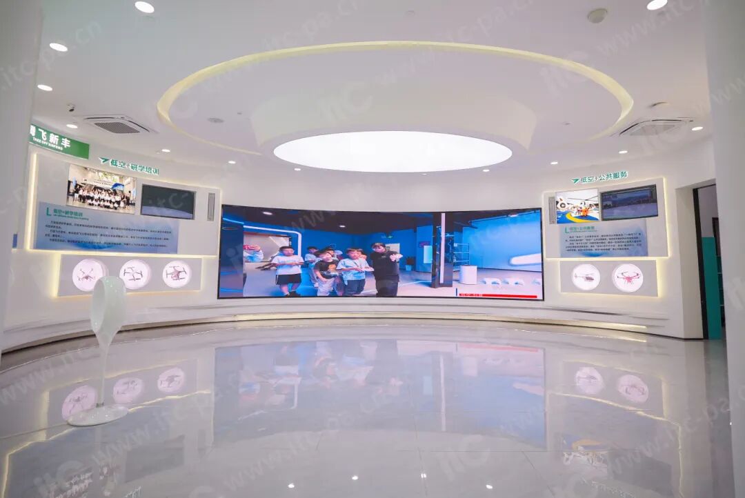 在核心展区,首先映入眼帘的是由 itc精心打造的室内全彩LED显示屏。它不仅是信息的窗口,更是视觉的艺术。通过该显示屏的部署,参观者可以直观感受到无人机群在城市上空有序穿梭的模拟画面,让抽象的技术概念转化为触手可及的视觉体验。