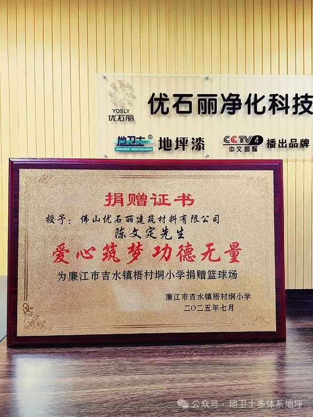 提要:近日,由佛山优石丽建筑材料有限公司捐赠修建的廉江梧村垌小学篮球场地坪顺利收官,新学期即可投入使用。这一善举不仅解决了学校运动场地的安全隐患,同时也为孩子们打造了一个安全、舒适的运动环境,助力他们的健康成长与体育梦想。