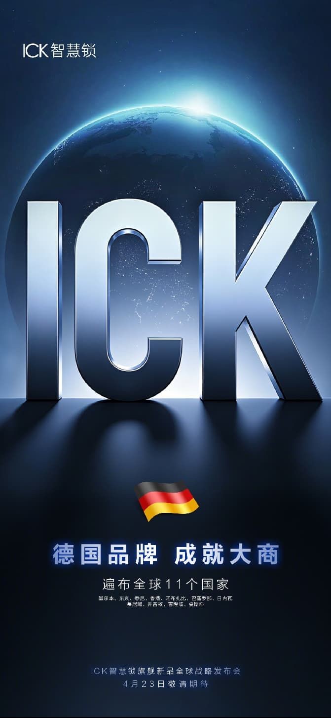 从欧洲高端精工到亚太市场深耕,从五金代工到智能安防先锋,ICK 始终坚守德国高端制造初心。4 月 23 日,ICK 智慧锁旗舰新品全球战略发布会即将启幕,品牌将以「带你走进大时代」为主题,推出面向全球市场打造的旗舰智能锁系列,搭载 170° 无死角大猫眼、5.5 英寸高清巨幕、6000mAh 大容量电池与支持 15 国语言的涂鸦智能系统,将德系精度与全球化智能体验推向新高度。未来,ICK 也将持续以德国精工标准打磨每一款产品,聚焦高端家居入口安全与使用体验,不断迭代技术与设计,让每一件产品都经得起时间与日常的双重考验,为全球高端家庭打造更安全、更耐用、更优雅的家居入口系统,传递德系高端匠心的品牌价值。