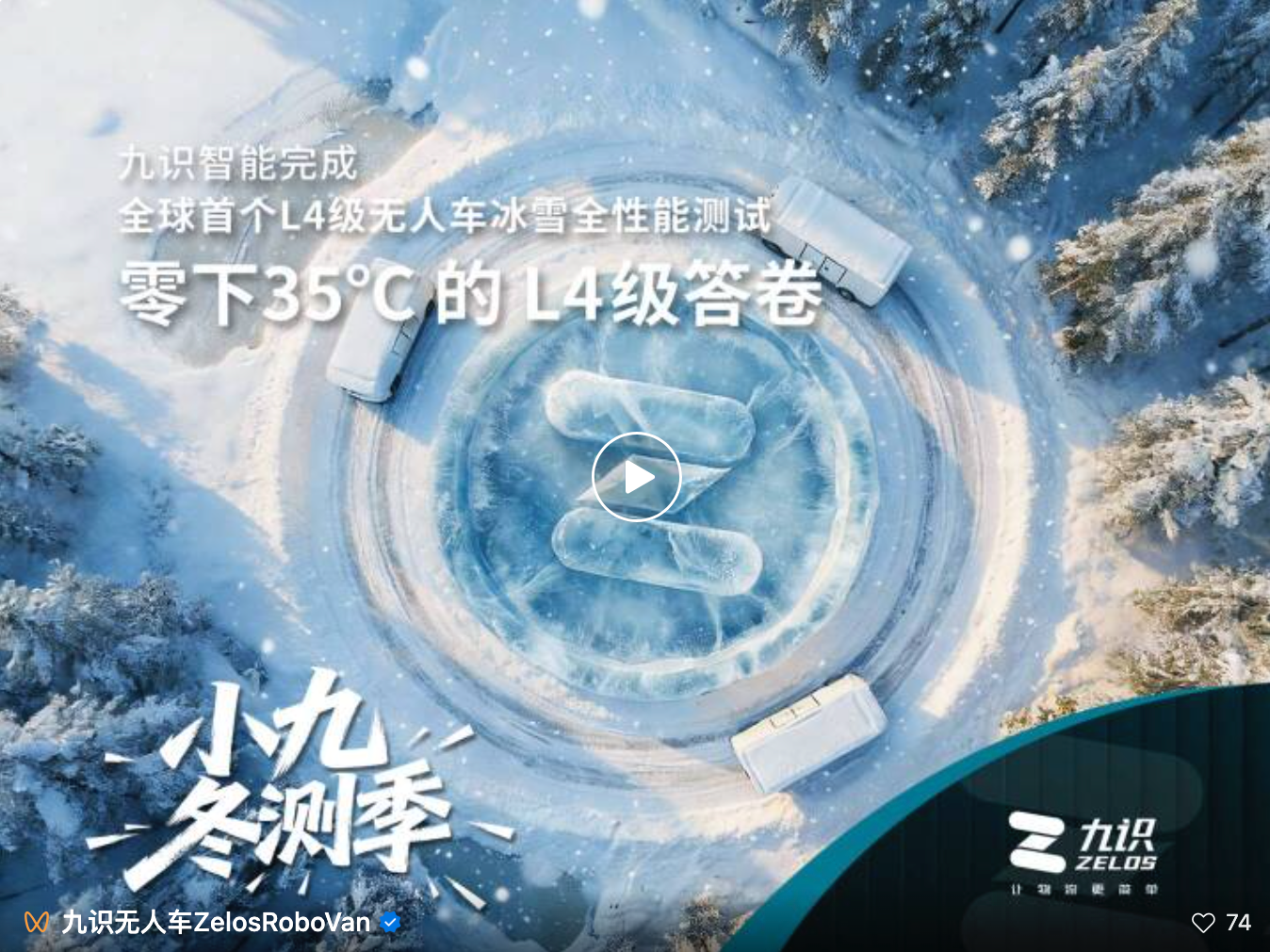 此次测试为全球L4级无人车在严寒地区的商业化运营提供了完整的技术验证样本,填补了全球L4级自动驾驶在冰雪场景下的实测空白,也标志着九识智能在极端环境下的技术成熟度达到行业领先水平。