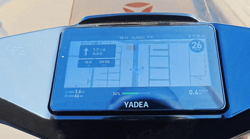 报告指出,雅迪冠能白鲨II的智能核心在于一块6寸Smart智慧屏。其UI设计逻辑清晰,信息呈现一目了然,即使在强光下也清晰可见,体验远超同级常见的LED仪表。这块屏幕的强大之处在于深度集成了车规级导航,支持手机投屏,并能提供路口红绿灯倒计时、3D放大图等实用信息,让用户骑行时无需低头看手机,极大提升了安全性。同时,通过蓝牙连接,它还能实现音乐外放、切歌及一键接打电话,将枯燥的通勤路程变为愉悦的移动娱乐空间。