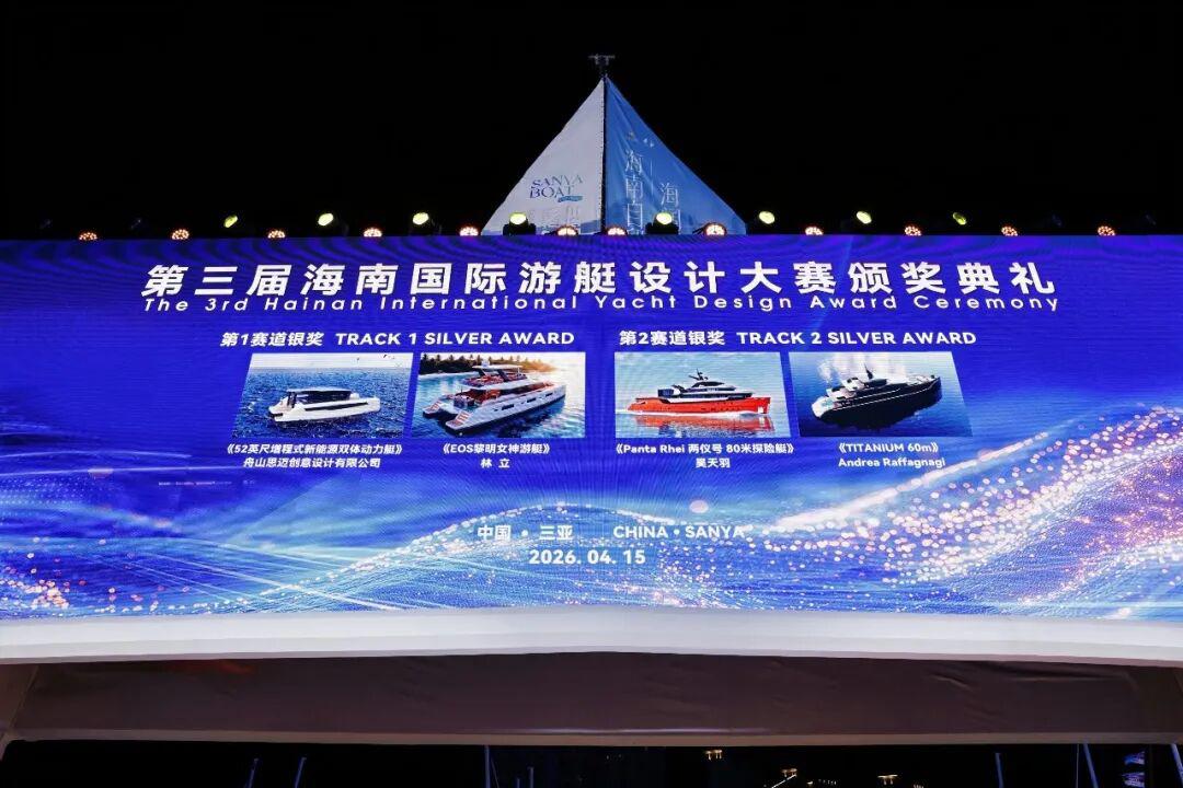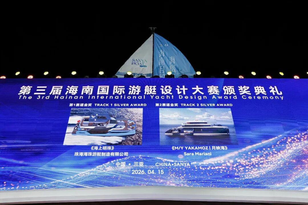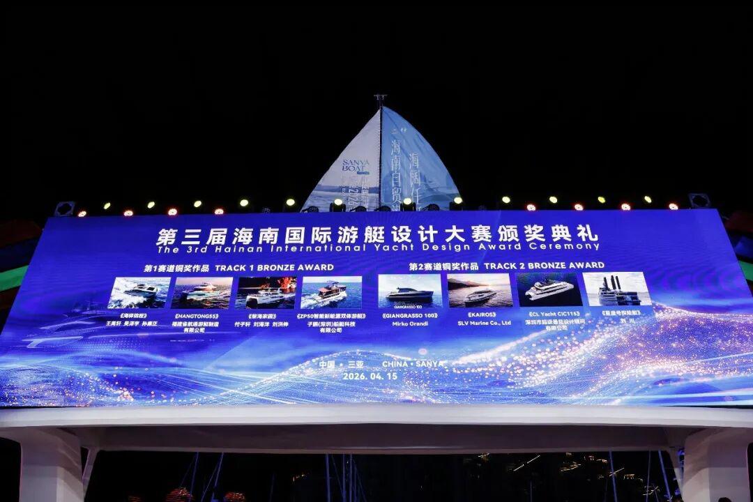 提要:4月15日晚,三亚国际游艇中心灯火璀璨,第六届中国国际消费品博览会三亚国际游艇分展区开幕式在此隆重举行,作为当晚开幕式的核心环节之一,第三届海南国际游艇设计大赛颁奖典礼同步盛大举办。来自国内外游艇行业的权威专家、获奖设计师代表及产业界领袖齐聚一堂,共同见证这一彰显中国游艇设计创新力量与国际视野的荣耀时刻,为全球游艇产业的绿色化、智能化与人文融合发展注入了强劲的“海南动能”。