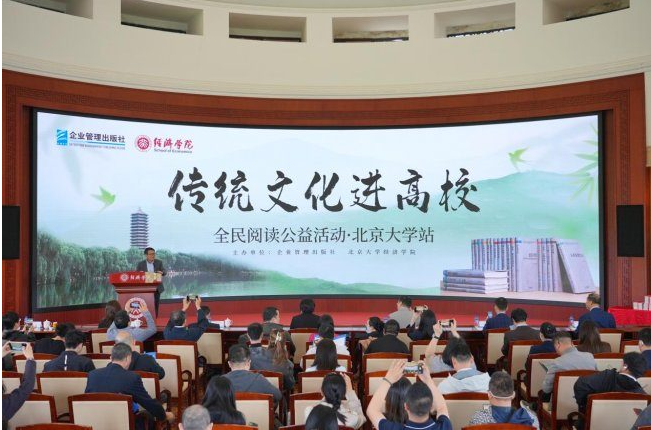 4月21日,“传统文化进高校”暨全民阅读公益活动在北京大学经济学院的东旭学术报告厅顺利举行。本次活动由企业管理出版社发起,企业管理出版社与北京大学经济学院联合主办,聚焦中华优秀传统文化与现代管理融合创新,汇聚学界、出版界、企业界多位嘉宾,以主旨演讲、深度对话等形式,推动国学智慧走进高校、融入当代管理实践,助力全民阅读深入开展,传承和弘扬中华优秀传统文化。