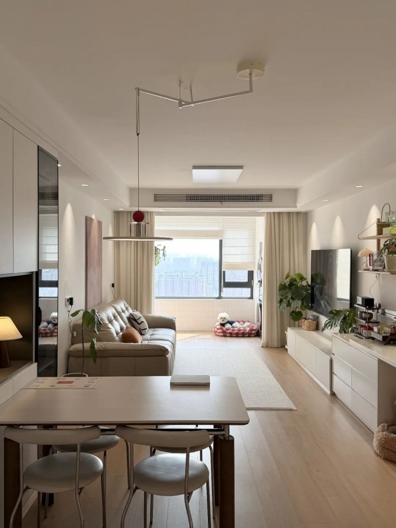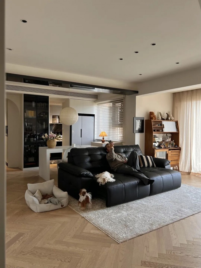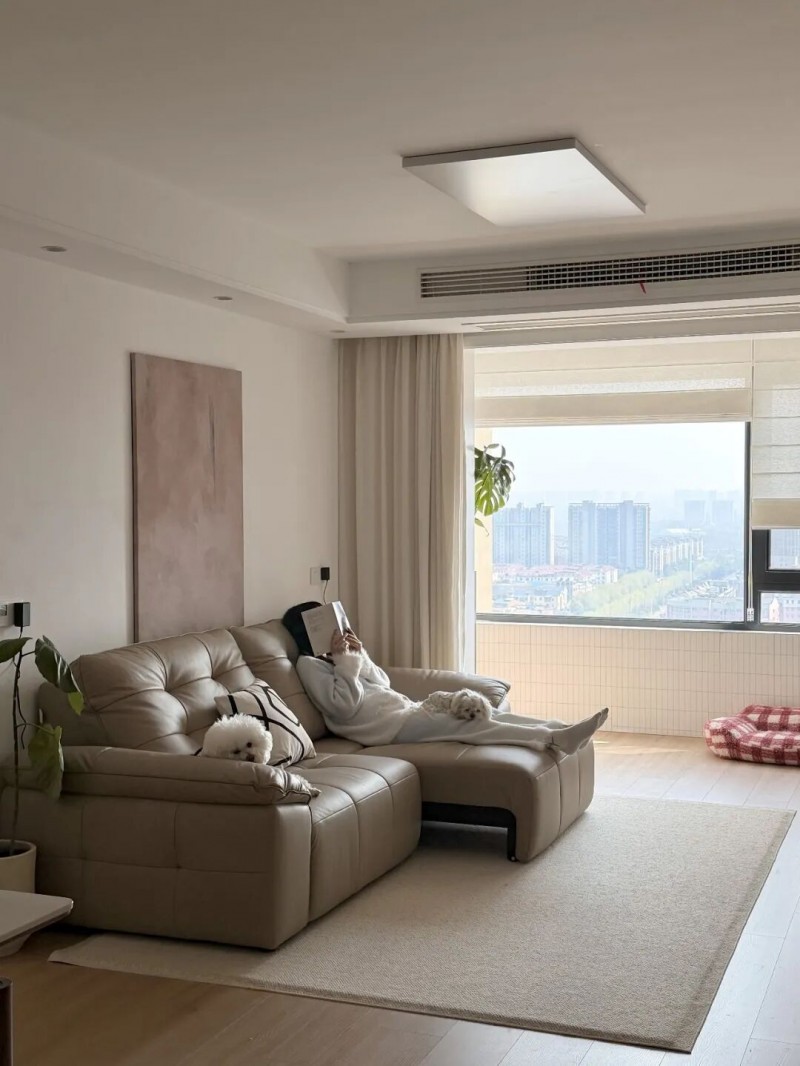 @快乐节节:“120㎡横厅显大多亏这张电动沙发床,多形态的变化模式,既待客从容,又能随时躺平放松,各有各的舒适”