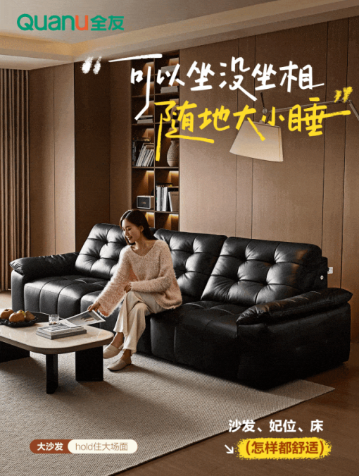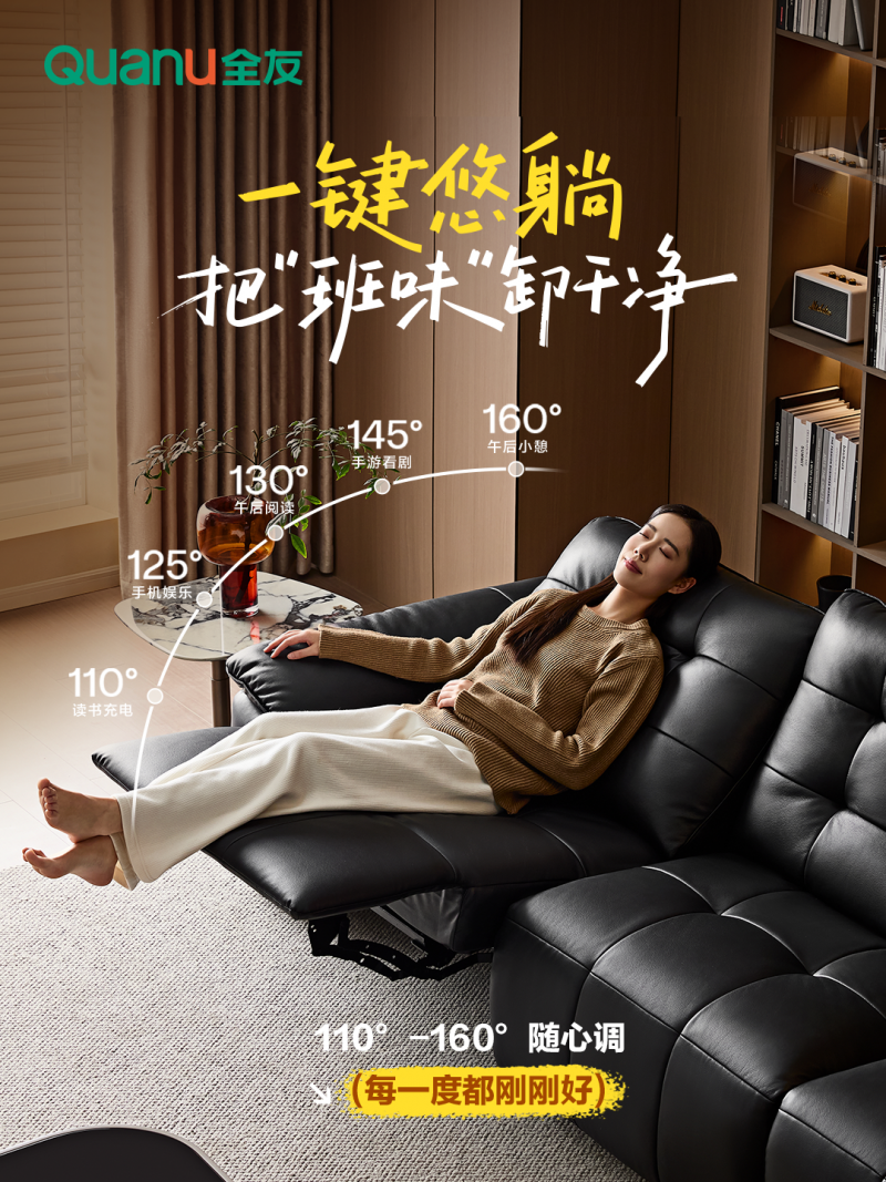 - 全友家居新品丨1号位功能沙发,一键实现坐躺自由