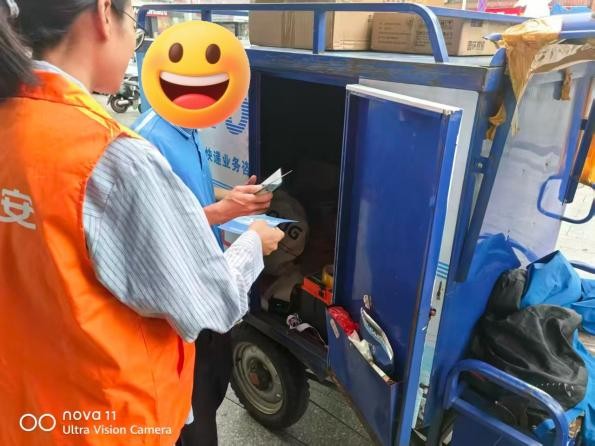 快递行业人员流动性强、日常收寄包裹流通量大,极易被不法分子借机利用,成为毒品流转与赃款洗钱的隐蔽渠道。活动现场,宣传工作人员通过悬挂宣传横幅、派发宣传手册的形式,面向驿站工作人员、快递从业人员以及周边居民普及专业的金融安全知识与合法权益常识。