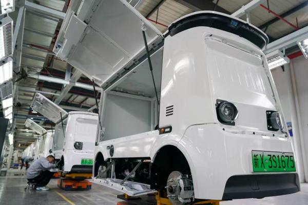 近日,在新石器慧通(北京)科技有限公司设于江苏省盐城市的生产车间,一辆辆造型方正、线条流畅的白色无人车正在流水线上移动,等待装车发往全国各地的物流网点。